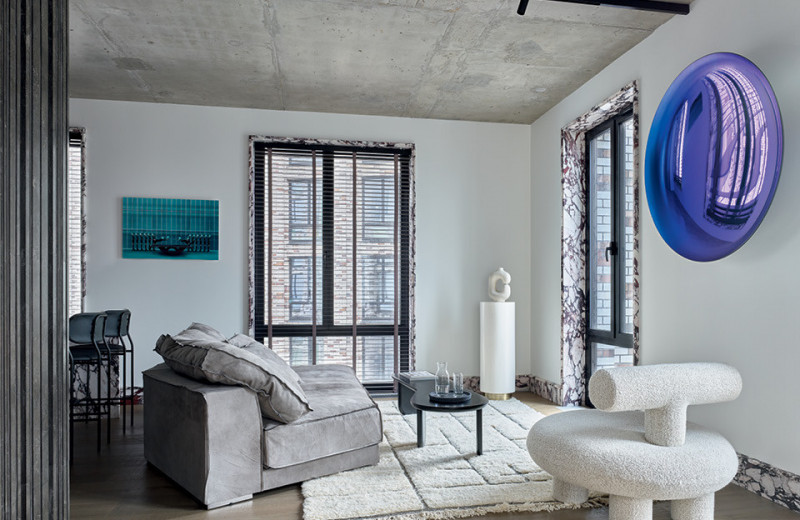 Над диваном Black Tie две работы «Интерьеры» Ивана Пуни. Журнальный столик Dalian.
