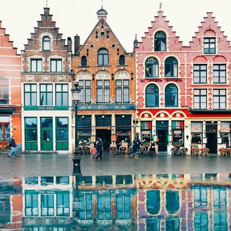 Красочный старый город в Европе с каналом и декоративной водяной мельницей. открытка из европыPREMIUM