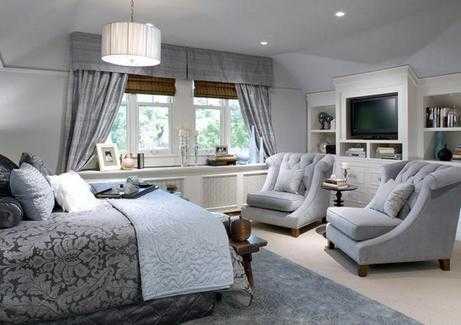 Сделать это можно при помощи покрывала, подушек, штор и постельного белья. Пол же можно оформить каким-нибудь небольшим ковриком. Серые шторы в интерьере спальни приглушат солнечный свет, а яркие утренние лучи не будут мешать человеку набираться сил. Светло серый цвет обладает способностью поглощать излишек светового потока.