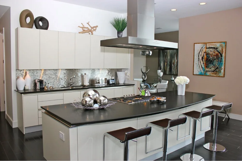 Этот вид облицовки хорош тем, что с его помощью можно имитировать любой другой материал: например, вписать текстуру дерева, которое менее устойчиво к кухонным условиям, или дорогого мрамора.