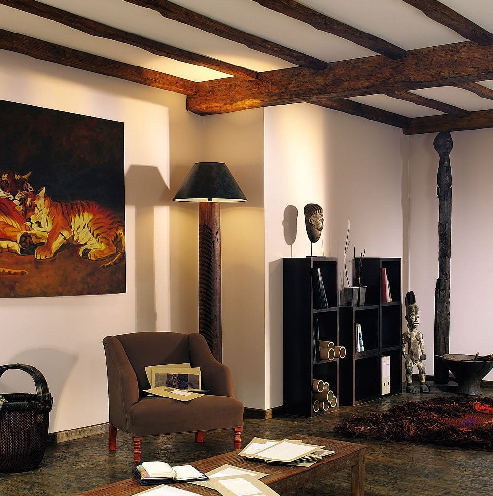 Раньше потолочные балки выполняли функцию несущих конструкций. Сейчас в большинстве случаев это оригинальный и стильный декор, уместный во многих интерьерах и позволяющий изменить восприятие пространства.