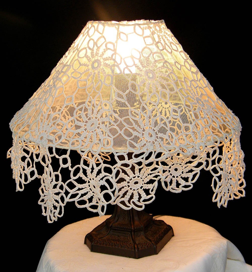 Очень интересными и нежными являются абажуры, выполненные из кружевных вязаных салфеток.