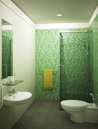 - Для избегания абсолютной однотонности необходимо в интерьере ванной комнаты использовать разнообразные оттенки зеленого цвета.